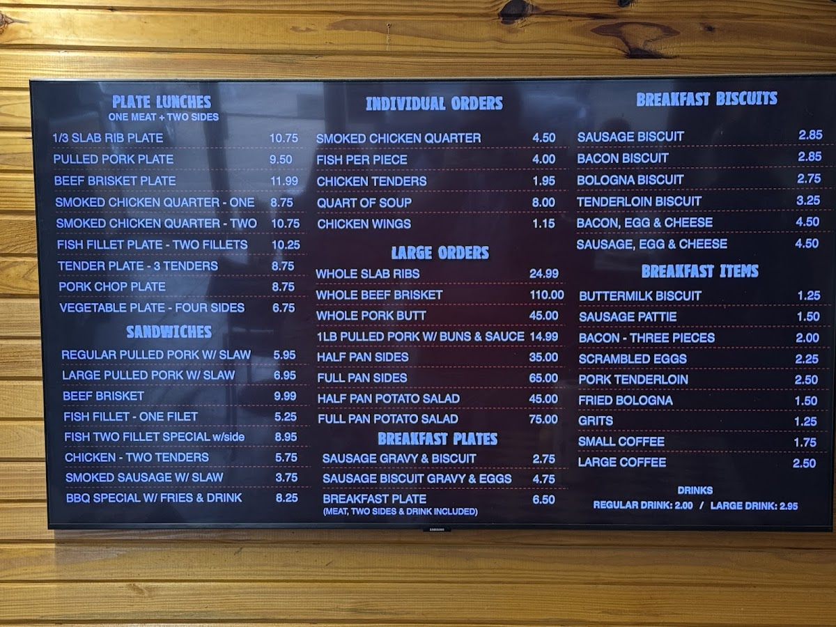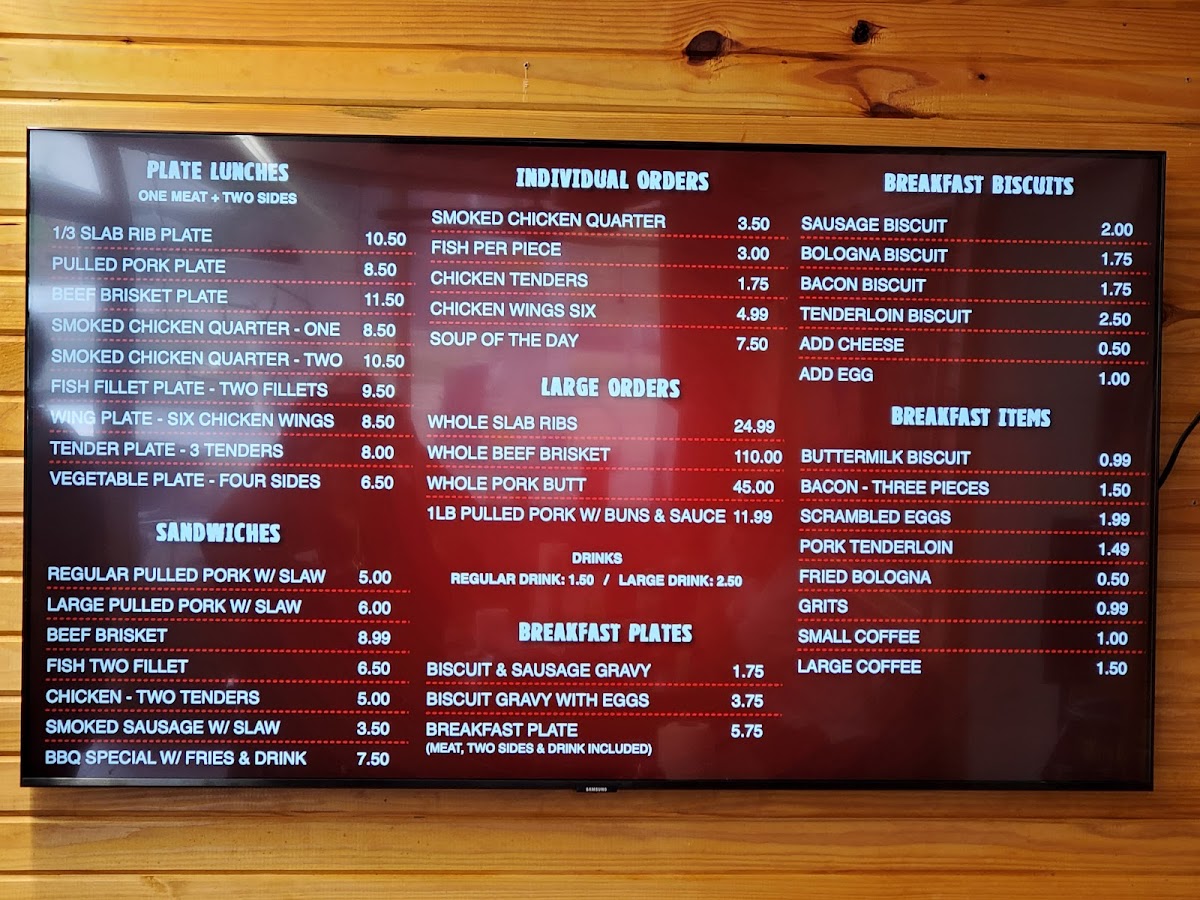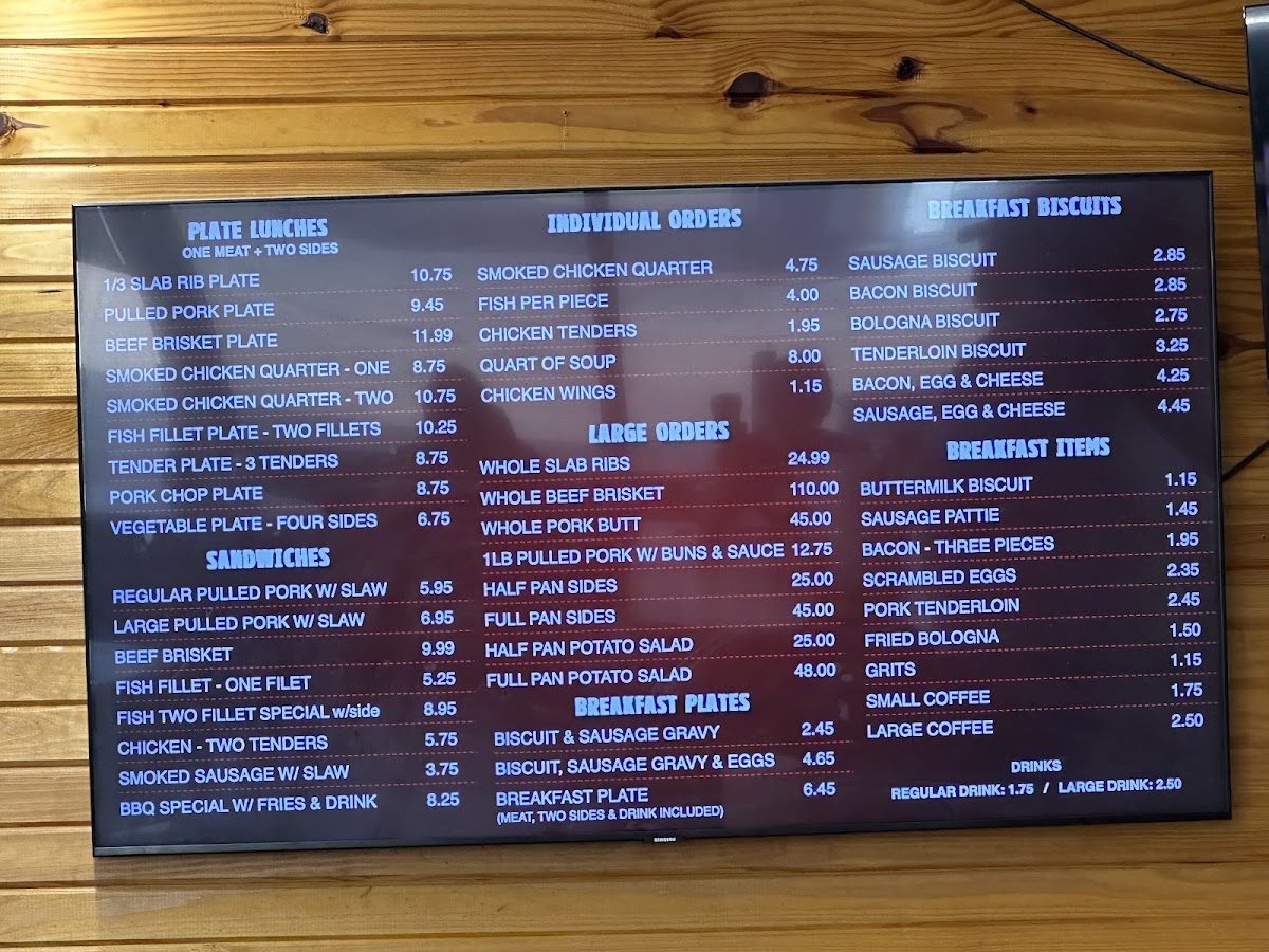 The menu at B's Hickory Smoke BBQ offers a delightful selection of Southern comfort food, perfect for satisfying any craving. For sides, you can enjoy Corn On The Cob, Baked Beans, Fried Okra, Potato Salad, and Hush Puppies, each providing a flavorful complement to your meal. The Plate Lunches section is packed with hearty options like the Fish Fillet Plate (Two Fillets), Vegetable Plate, and the popular Pulled Pork Plate. For those craving chicken, the Smoked Chicken Quarter - Two and Smoked Chicken Quarter - One are great choices. Sandwich lovers will appreciate the variety, including the BBQ Special Sandwich With Fries & Drink, the classic Regular Pulled Pork Sandwich With Slaw, and the Fish Two Fillet Sandwich With Side. There’s also a satisfying Chicken Sandwich - Two Tenders and the flavorful Smoked Sausage Sandwich With Slaw. If you're looking to feed a crowd, the Full Pan Sides and Half Pan Sides (including the popular Potato Salad) are excellent for large gatherings, along with the 1 Lb Pulled Pork With Buns & Sauce. Individual orders like Chicken Wings, One Piece Fried Fish, and 1/2 Rack Ribs are perfect for a quick and tasty meal. To quench your thirst, the restaurant offers Regular Drink and Large Drink. With such a broad and satisfying menu, B's Hickory Smoke BBQ is a great destination for both small meals and larger gatherings, all at reasonable prices.